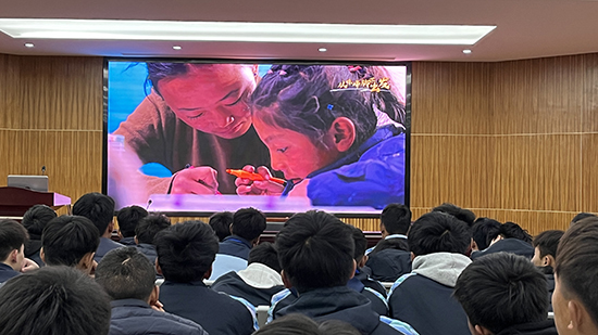 觀影結(jié)束后,副校長(zhǎng)馮朋員以定日縣抗震救災(zāi)為引子,為西藏班的師生們帶來了一堂主題鮮明、內(nèi)涵豐富的思政課。馮校長(zhǎng)深情的話語,字字鏗鏘,句句有力,他說道:“在災(zāi)難面前,我們用實(shí)際行動(dòng)詮釋了責(zé)任與擔(dān)當(dāng),展現(xiàn)了團(tuán)結(jié)與奉獻(xiàn)的力量。爭(zhēng)分奪秒的中國(guó)速度彰顯了我們對(duì)人民生命安全的莊嚴(yán)承諾;眾志成城的中國(guó)力量體現(xiàn)了我們中華民族面對(duì)災(zāi)難時(shí)的堅(jiān)定信念;守望相助的民族團(tuán)結(jié)鑄就了我們共同抵御風(fēng)雨、共創(chuàng)美好未來的堅(jiān)實(shí)基石。”馮副校長(zhǎng)的話語深深觸動(dòng)了在場(chǎng)每一位同學(xué)的心,同學(xué)們報(bào)以熱烈的掌聲。最后,他鼓勵(lì)同學(xué)們要珍惜當(dāng)下,將來以實(shí)際行動(dòng)回饋社會(huì),為國(guó)家的繁榮和家鄉(xiāng)的發(fā)展貢獻(xiàn)自己的一份力量。