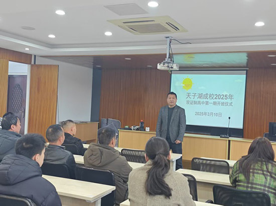 3月10日,安吉社區教育學院天子湖分院(天子湖成校)2025年第一期成人高中班開班儀式在學校二樓培訓室隆重舉行。學校郭士斌校長、班主任柳老師以及部分新生參加了此次開班儀式。