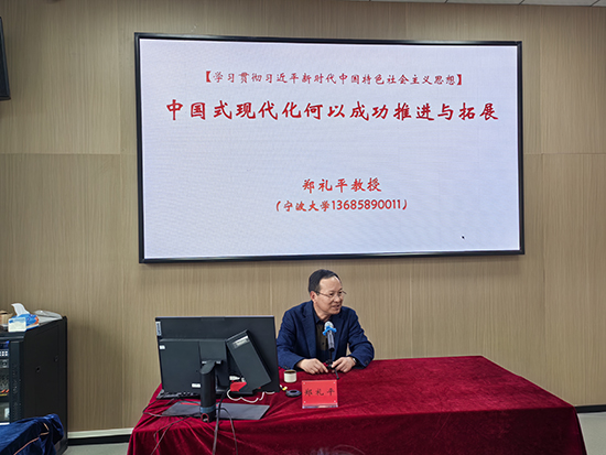 寧波大學教授鄭老師以“中國式現(xiàn)代化的成功推進與拓展”為主題,講到中國共產(chǎn)黨的百年奮斗歷史。他通過生動的案例和詳實的數(shù)據(jù),展示了中國式現(xiàn)代化在經(jīng)濟、政治、文化、社會、生態(tài)文明等方面的顯著成就,引導入黨積極分子深刻認識到中國式現(xiàn)代化的偉大意義和光明前景,深刻了解中國共產(chǎn)黨的百年奮斗歷史。