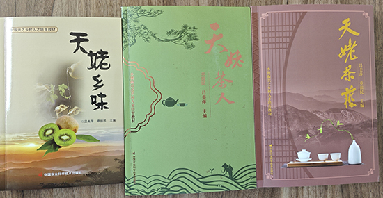 由浙江開放大學新昌學院院長呂美萍和新昌縣農業農村局農技推廣研究員章祖民共同主編的《天姥鄉味》《天姥茶人》《天姥茶藝》三本農民培訓系列教材正式出版。該培訓系列教材聚焦新昌鄉味、茶人和茶藝,對推廣新昌特色文化、推動茶產業升級具有重要意義。