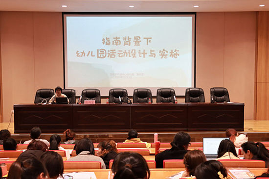 蘆浦中心幼兒園園長(zhǎng)陳丹芝帶來(lái)《指南背景下幼兒園活動(dòng)的設(shè)計(jì)與實(shí)施》講座。她強(qiáng)調(diào)集體教學(xué)在幼兒園教育中的核心地位,解析活動(dòng)設(shè)計(jì)全流程,指出明確目標(biāo)、確定重難點(diǎn)、做好準(zhǔn)備、精心設(shè)計(jì)過(guò)程是教學(xué)成功關(guān)鍵,還突出幼兒主體性和教學(xué)游戲化,以精準(zhǔn)提問(wèn)和有效回應(yīng)促進(jìn)幼兒參與,提供實(shí)踐指導(dǎo)。