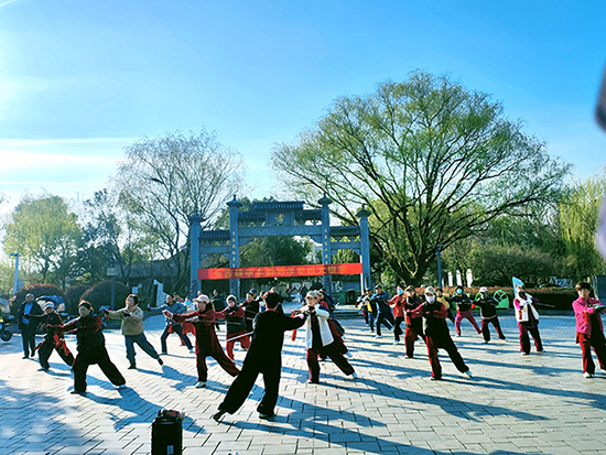 孝子公園綠意盎然的環境為課程增添獨特意趣。在晨光中舞劍,劍光與樹影交錯,構成一幅動靜相宜的養生畫卷。薛建萍介紹,戶外教學能讓學員更好地感受“天人合一”的太極理念,公園的開闊空間也利于動作舒展。課程還融入中醫經絡知識,講解太極劍對肩頸、腰腿的保健作用,激發學員長期堅持的動力。