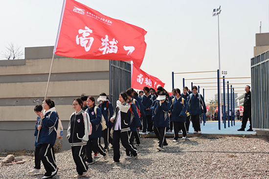 正午時分,曖陽如春,近900名高三師生整齊列隊在學(xué)校田徑場上。副校長吳永勝發(fā)表了熱情洋溢的動員講話,他鼓勵同學(xué)們在毅行途中發(fā)揚堅韌不拔的精神,勇于挑戰(zhàn)自我、超越極限。