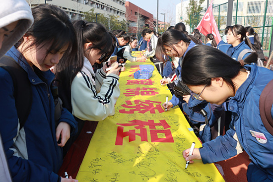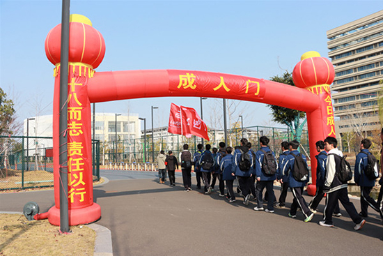 毅行結(jié)束后,學(xué)生從西門有序通過成人門進(jìn)場,正式步入成人儀式環(huán)節(jié)。在成人門旁,設(shè)置了莊重的簽名墻,同學(xué)們依次上前,鄭重地簽下自己的名字,每一筆每一劃都飽含著對未來的期許與承諾。當(dāng)踏入成人門的那一刻,仿佛有一種無形的力量注入到每一位同學(xué)的心中,他們帶著對未來的憧憬與期待,吶喊著沖過成人門,那激昂的吶喊聲,如同戰(zhàn)鼓擂動,久久回蕩在校園上空,彰顯著他們邁向成人的堅定決心。