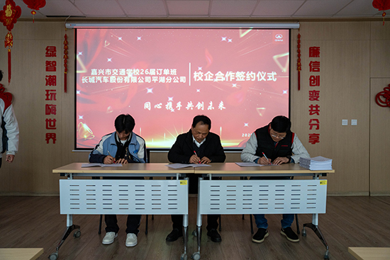 嘉興市交通學校(嘉興交通技工學校)是第一個和長城汽車簽訂校企合作的學校。自2020年起,學校依托嘉興市交通職業教育集團,與長城汽車共建產業學院,形成“共商、共建、共育”的協同育人模式。首批32名學生曾赴河北保定總部接受3—6個月培訓,學成后成為平湖分公司的首批技術骨干。通過與長城汽車開展深度合作,開設訂單班,定向培養汽修、新能源汽車裝調等專業人才,拓展雙方實習就業一體化通道,推動人才培養與區域經濟深度融合。