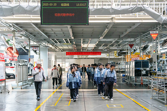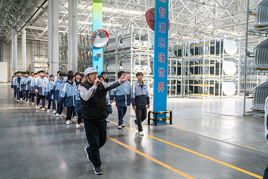 在長城汽車平湖分公司的焊裝車間和總裝車間,學生們近距離觀察了自動化生產線的高效運作。一臺臺智能機器人精準完成焊接、裝配等工序,展現了平湖整車項目“14個月建成投產”的“長城速度”。企業負責人介紹,該項目是平湖首個百億級標桿產業,主要生產哈弗品牌及新能源車型,年產達10萬輛,為長三角一體化發展注入強勁動力。