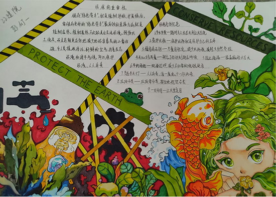 活動期間,學部面向全體學生征集環(huán)保主題創(chuàng)意作品,共收到手工藝品、繪畫、短視頻等作品35余份。其中,由環(huán)保主題的手抄報、舊紙盒改造的“環(huán)保紙盒”樹葉展板等作品脫穎而出,彰顯了學生的創(chuàng)新思維與實踐能力。優(yōu)秀作品在校內(nèi)展廳集中展示,引發(fā)師生熱烈反響。