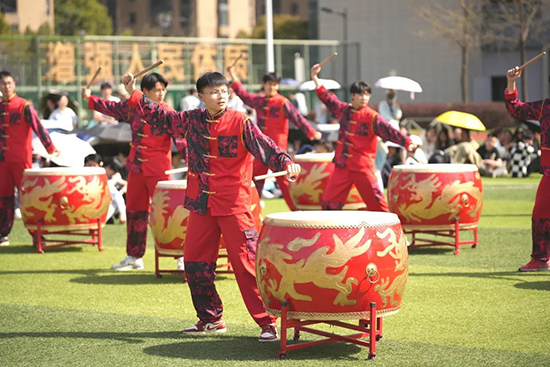 精彩的體育文化主題展演將現場氣氛推向高潮。青荷鼓隊帶來了氣勢磅礴的表演,激昂的鼓聲如陣陣春雷,展現出同學們蓬勃的朝氣與活力;校健美操隊的隊員們則以優美的身姿、靈動的舞步,展示了青春的魅力與風采,贏得了現場觀眾的陣陣掌聲和歡呼聲。