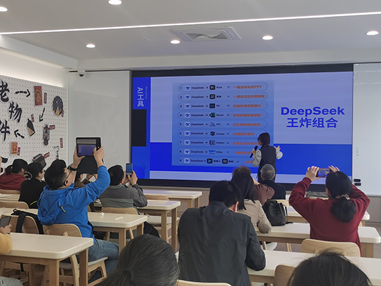 課程伊始,丹丹老師向?qū)W員們介紹DeepSeek、豆包、通義千問等AI智能體的基本原理和主要功能,讓大家了解與AI“打交道”的入門知識(shí)。“AI的應(yīng)用場景很廣,掌握指令技巧能讓搜索結(jié)果更加高效精準(zhǔn)。”在探討如何運(yùn)用人工智能應(yīng)對(duì)日常問題環(huán)節(jié),丹丹老師分享《20例DeepSeek基礎(chǔ)指令》《DeepSeek王炸組合》等干貨,并通過實(shí)操演示指導(dǎo)學(xué)員們?nèi)绾卫肁I獲取新聞?wù)B(yǎng)生科普、旅游攻略、生活妙招等。學(xué)員們學(xué)習(xí)熱情高漲,認(rèn)真記錄操作要點(diǎn),踴躍參與互動(dòng)環(huán)節(jié),課堂氣氛格外火熱又融洽。