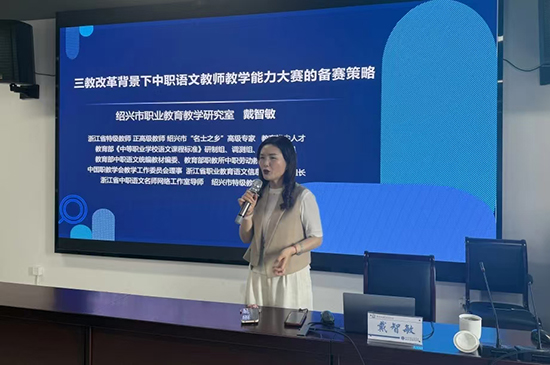 紹興市職成教教研員戴智敏老師分享“三教改革背景下中職語(yǔ)文教師教學(xué)能力大賽的備賽策略”,她建議老師們既要仰望天空又要腳踏實(shí)地,要在了解國(guó)家層面大政方針與教學(xué)改革的關(guān)系下和立足語(yǔ)文教學(xué)、學(xué)會(huì)打破單篇教學(xué),大情景下構(gòu)建多篇專(zhuān)題教。講座內(nèi)容給老師們今后的參賽指明了方向。