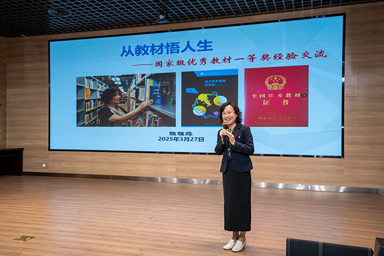 轉場至荷池校區報告廳,來自寧波中學數學正高特級教師周丕芬和余姚技師學院 電子電工正高特級教師(二級教授)的陳雅萍分別以《破繭成蝶:青年教師專業成長的三重進階之路》和《從教材悟人生—國家級優秀教材一等獎經驗交流》做了報告,以自身的成長分享給青年教師。
