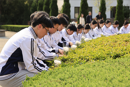 肅立默哀寄深情,鮮花朵朵敬忠魂。上午9時,德清烈士陵園內(nèi)松柏蒼翠,莊嚴肅穆。師生們整齊列隊于革命烈士紀念碑前,手持白菊,靜默肅立。伴隨著雄壯高亢的《義勇軍進行曲》旋律,全場齊唱中華人民共和國國歌。國歌唱畢,全體人員垂首默哀三分鐘,以無聲的誓言告慰英靈。隨后,在低沉悠長的《獻花曲》中,師生們緩緩繞行紀念碑一周,最后向烈士紀念碑敬獻花束。