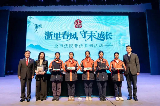 3月28日,湖州市中級人民法院黨組書記、院長肖國耀走進浙江省湖州藝術與設計學校,以“法治副校長”身份為500余名學生講授專題法治教育課。湖州市教育局黨委書記、局長陳建良參加。