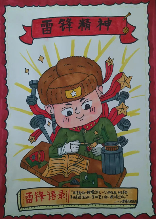 妙筆繪雷鋒,榜樣駐心間