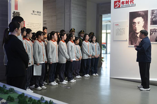 隨后,思政教師王凱帶領(lǐng)同學(xué)們參觀了錢壯飛紀(jì)念館。“這副斑駁的茶色眼鏡,曾見證錢壯飛烈士潛伏敵營的驚險(xiǎn)歲月……”在錢壯飛紀(jì)念館內(nèi),思政教師王凱指著展柜中的文物,生動講述這位中共特科傳奇人物用隱形墨水傳遞密信、保衛(wèi)黨中央的英雄事跡。當(dāng)講到“這份密信改變了中國革命走向”時(shí),同學(xué)們紛紛駐足在烈士的銅質(zhì)浮雕、泛黃手稿前,感受革命先輩的信仰力量。