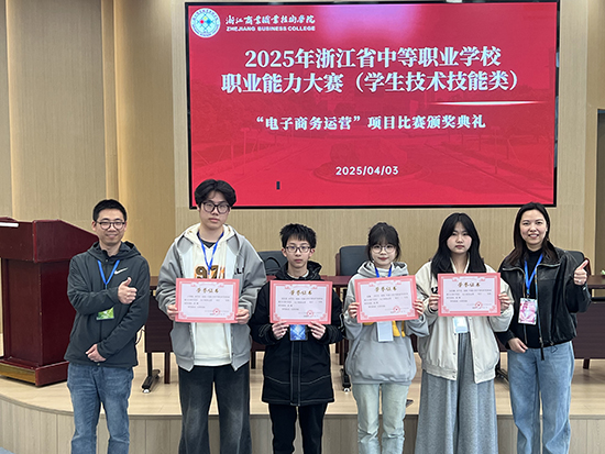 以賽促學(xué),開(kāi)啟電商人才新篇;以教強(qiáng)能,夯實(shí)行業(yè)進(jìn)步階梯。4月3日,2025年浙江省中等職業(yè)學(xué)校職業(yè)能力大賽“電子商務(wù)運(yùn)營(yíng)”賽項(xiàng)在浙江商業(yè)職業(yè)技術(shù)學(xué)院舉行。海鹽職業(yè)教育中心參賽團(tuán)隊(duì)22商務(wù)2班晏飄、22跨境班盧羿帆、23跨境班劉喬雅、23跨境班宣東昊等4名學(xué)生,與來(lái)自全省各地市的22組選手同場(chǎng)競(jìng)技,經(jīng)過(guò)2天激烈比拼最終榮獲團(tuán)隊(duì)一等獎(jiǎng)(第一名)的優(yōu)異成績(jī),并獲得了國(guó)賽資格。