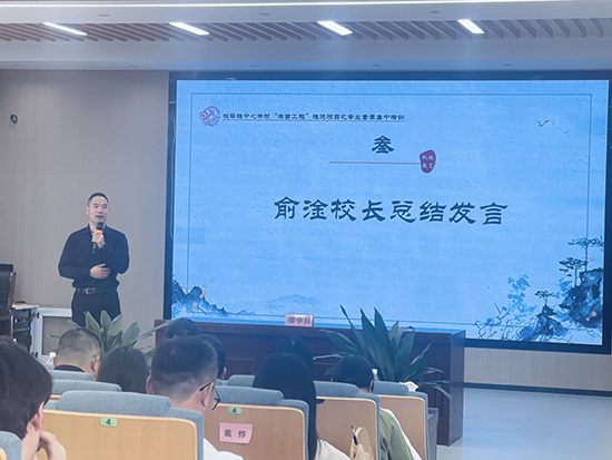 會議最后,諸暨市楓橋鎮中心學校黨委書記兼校長俞淦作總結發言,強調培訓講座旨在拋磚引玉,希望全體教師能夠主動向教育先行者取經,積極與兄弟學校交流互鑒。強調要將培訓所得轉化為實際行動,落實到日常課堂教學和具體教育工作中,在實踐中掌握第一手資料,發現問題,及時找到破解難題的思路和方法,提煉經驗,形成“實踐—反思—優化”的專業發展閉環。