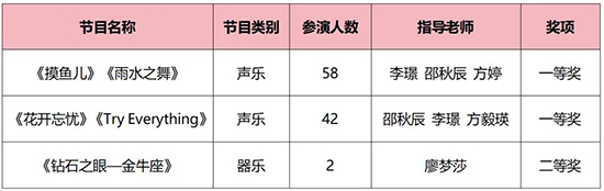 浙江省湖州藝術與設計學校參演節目表現不俗,均獲得了優異的成績。器樂作品《鉆石之眼·金牛座》用鋼琴和揚琴的雙重奏形成文化對話;聲樂作品《花開忘憂》傳遞治愈力量,《Try Everything》則以活力四射的合唱點燃全場。《摸魚兒》以現代編曲詮釋古詩詞,《雨水之舞》的空靈和聲模擬自然韻律,生動詮釋藝校學子對生態理念的藝術表達。(許竹婷)