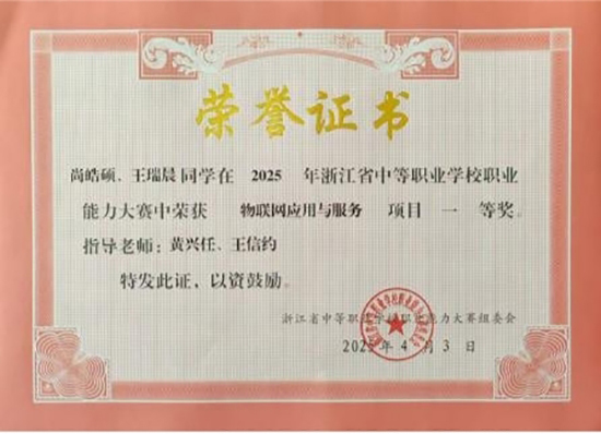 4月3日,2025年浙江省中等職業學校職業技能大賽賽場捷報頻傳,溫州市職業中等專業學校信息學部師生憑借卓越實力與頑強拼搏精神,在“物聯網應用與服務”與“數字產品檢測與維護”兩大賽項中斬獲佳績。