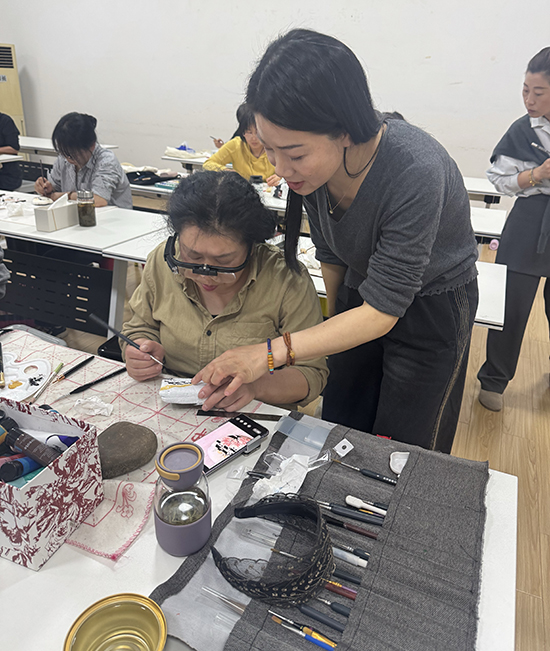 在實際操作環(huán)節(jié),學員們熱情高漲,紛紛拿起畫筆,迫不及待地將自己心中的創(chuàng)意描繪在石頭上。遇到問題時,施老師會及時給予耐心指導,幫助學員解決困難。學員們相互交流、互相學習,現(xiàn)場氣氛十分活躍。