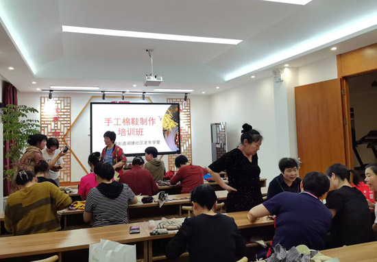 手工棉鞋制作班就是生動縮影。年初,湖塘老年學校深入調研,發現湖塘社區不少居民對手工制作有濃厚興趣和一定基礎,便積極謀劃,開辦手工棉鞋制作班。學校邀請當地棉鞋制作網紅王國琴作為老師,為大家提供系統培訓,從針法、材質挑選到設計創新,助力大家掌握扎實技能。同時,引入市場營銷理念,組織棉鞋售賣,老人們參與產品設計、包裝與銷售,不僅增加收入,還成功融入數字時代。