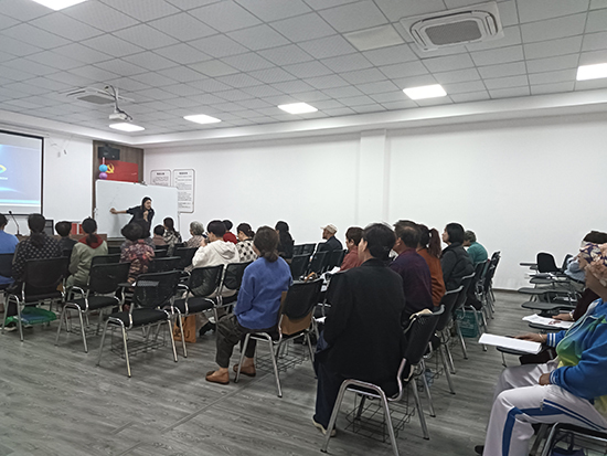 授課當(dāng)日清晨,教室里就坐滿了熱情滿滿的學(xué)員。授課老師張霞老師專業(yè)功底扎實(shí),教學(xué)經(jīng)驗(yàn)豐富,課程從基礎(chǔ)樂(lè)理知識(shí)講起,通過(guò)生動(dòng)的比喻和演示,幫助老年學(xué)員理解音符、節(jié)拍等概念。在發(fā)聲練習(xí)環(huán)節(jié),老師耐心糾正每個(gè)人的口型和發(fā)聲位置,帶領(lǐng)學(xué)員們從簡(jiǎn)單的音階開(kāi)始,逐步提升演唱技巧。學(xué)員們?nèi)褙炞ⅲJ(rèn)真模仿著老師的每一個(gè)動(dòng)作和發(fā)音,教室里不時(shí)傳出陣陣悠揚(yáng)的歌聲。