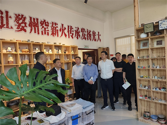 大家參觀了金華市第一中等職業學校的婺州窯非遺名師工作室,該校注重從作業到作品再到商品的轉化。以藝術設計專業為例,教師將課堂開設在校園之外,帶領學生為村落設計專屬的文創產品,讓學生的作品以產品的形式落地,投入實際的生產應用中。