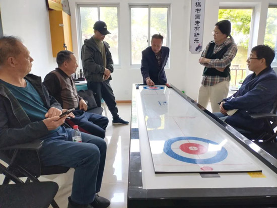 “這‘桌面運動’既考腦力又練協調!”施老師抹去細汗,笑著展示高分球。活動尾聲,兩地教師相約以球會友,自發組建“冰壺研習群”,約定每月“云端”切磋。將這項兼具趣味與健康的運動融入退休生活。