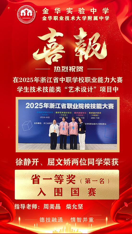 近期,2025年浙江省職業院校技能大賽圓滿落幕,金華實驗中學在多個賽項中斬獲佳績,取得三個省一等獎、一個省三等獎,其中“嬰幼兒保育”“藝術設計”兩大賽項更是奪得第一名,將代表浙江省出征國賽!學校的技能培養與高考升學成績持續領跑同類學校,彰顯“雙線并進”的育人實力。