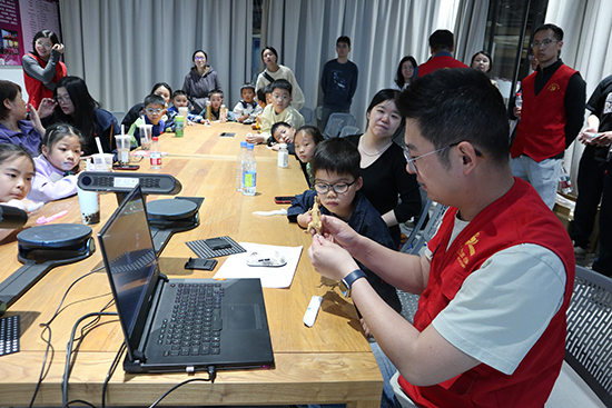 12名小朋友被分成2組,他們現(xiàn)場觀摩3D打印進(jìn)程,其余4位黨員教師志愿者和4名學(xué)生志愿者也積極參與活動(dòng)。這些黨員教師個(gè)個(gè)都是高技能人才,如浙江工匠褚佳祺、電工電子高級講師胡雙雙、機(jī)械高級講師郝婷婷和勵(lì)萍老師。有的志愿者負(fù)責(zé)向小朋友們進(jìn)行一對一的現(xiàn)場答疑,有的志愿者現(xiàn)場給小朋友發(fā)放3D打印禮物。