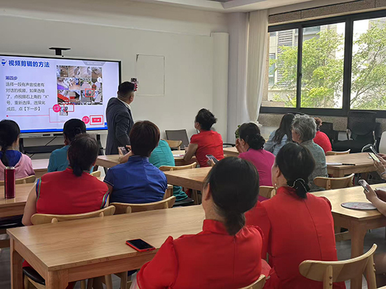 課程接近尾聲時,志愿者們還教大家如何將剪輯好的視頻發布到抖音平臺上,與更多人分享自己的快樂。一些老人表示,這是他們第一次接觸視頻剪輯,沒想到能這么快就學會,以后也要用這種方式記錄生活,分享美好。