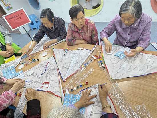 活動現(xiàn)場,老人們圍坐在一起,桌上整齊擺放著空白風(fēng)箏、五彩顏料和繪畫工具。在工作人員的耐心指導(dǎo)下,他們紛紛拿起畫筆,全神貫注地在風(fēng)箏上勾勒圖案、涂抹色彩。