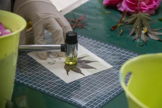 “植物拓印”環節備受大家的喜愛。學生們利用植物的自然形態和色彩,將其拓印在日歷賀卡上,創作出一件件充滿自然氣息的藝術作品。這一過程不僅讓大家親身體驗了自然的魅力,更激發了他們對生態環境的思考與感悟。