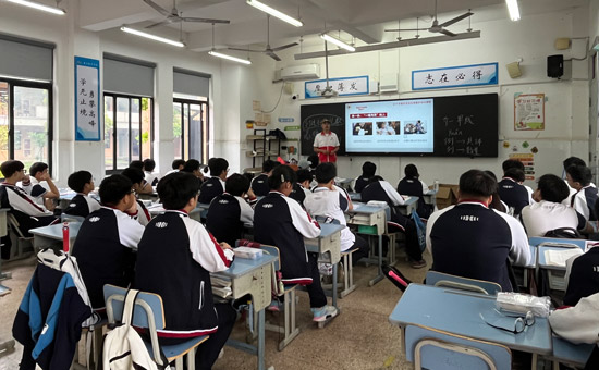 理論講解后,丁老師以人體模型為教具,分步演示“海姆立克急救法”“站在患者身后,雙腿前后開立,一手握拳抵住肚臍上方兩橫指……”他邀請學生上臺模擬操作,針對按壓位置不準確、力度不足等問題現場糾正。“原來正確的手勢和發力點這么關鍵!”參與體驗的學生感慨道。其他同學則用書包模擬“患者”,在座位上跟隨練習,形成“一人操作、全員跟練”的互動場景。