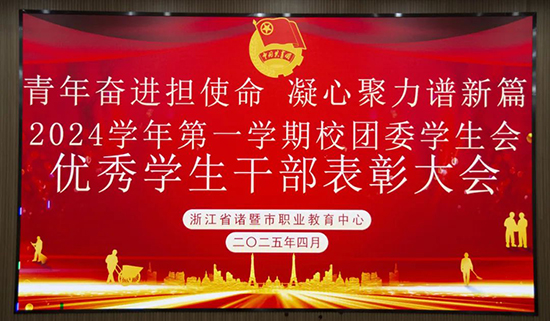 4月23日,諸暨市職業教育中心2024學年第一學期校團委學生會表彰大會在校多功能廳隆重舉行,本次大會主要為了進一步貫徹“服務師生 服務學校”的理念,更好的推動校團委學生會的工作與發展,著重重申學生干部的帶頭作用,為未來的工作奠定基礎,同時對于上學期的優秀學生干部進行獎勵與表彰。