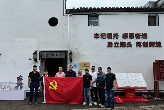 活動首站,黨員教師們抵達陳望道紀念館。踏入莊嚴肅穆的場館,映入眼簾的是一幅幅泛黃的老照片、一件件承載著歷史記憶的文物。在講解員聲情并茂地講述下,大家仿佛穿越時空,回到了那段崢嶸歲月。從革命先輩們為民族獨立拋頭顱、灑熱血的英勇事跡,到他們在艱苦環境中堅守信仰、不懈斗爭的頑強精神,每一個故事都直擊心靈,讓在場的黨員教師們深受觸動。