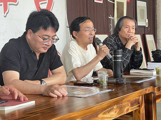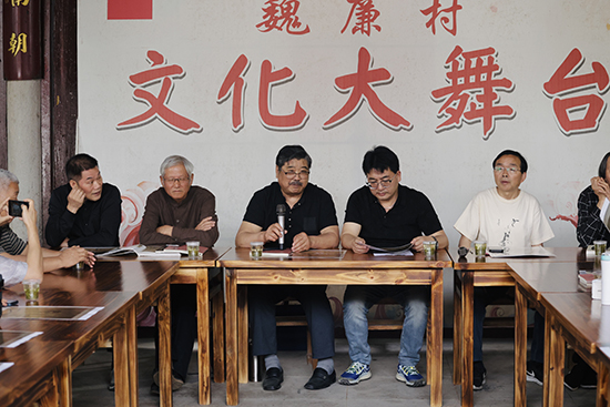 諸暨市三賢研究會副會長、魏廉書畫社社長魏仁虎主持。與會人員圍繞“魏湘的書畫藝術如何發掘傳承”等話題展開研討。俞琦杰概括為三個“風”:先生之風,得其遺風,如坐春風。許紹滿稱“一個村能舉辦這樣有檔次的研討會,不光諸暨范圍內絕無僅有,估計省內外也不一定會有。這樣的研討會非常接地氣,具有更大的意義和示范作用。”丁曉爾指出:魏氏家廟作為一個村文化禮堂,布置得如此高大上,在魏湘故里舉行其書畫藝術研討會,是最合適也是最好氛圍的地方。魏湘作為一個國家級書畫人才,值得深入挖掘、研究和學習。中華詩詞學會會員、中國楹聯學會會員、諸暨市詩詞楹聯學會名譽會長、諸暨市三賢研究會副會長徐建勇概括為三點:一是魏湘的畫作,學老蓮,頗具陳氏風格,更有自己筆墨特色;二是他的書法功底深厚,后期亦多老蓮風貌;三是對所見幾首題畫詩,不僅合律,藝術水平也很高,堪稱文人畫家。諸暨市文史專家潘丹則稱:在中國書畫史上,明末清初的陳洪綬(號老蓮)以其高古奇崛的畫風獨樹一幟,而清代畫家魏湘則是這一藝術脈絡的重要傳承者與創新者。最后,與會專家提出了建議與對策,一致認為:魏湘的書畫藝術繼承老蓮的風格,有獨到之處,要通過各種渠道,對魏湘其人、其詩文、其書畫藝術加強挖掘整理,更好地予以呈現。