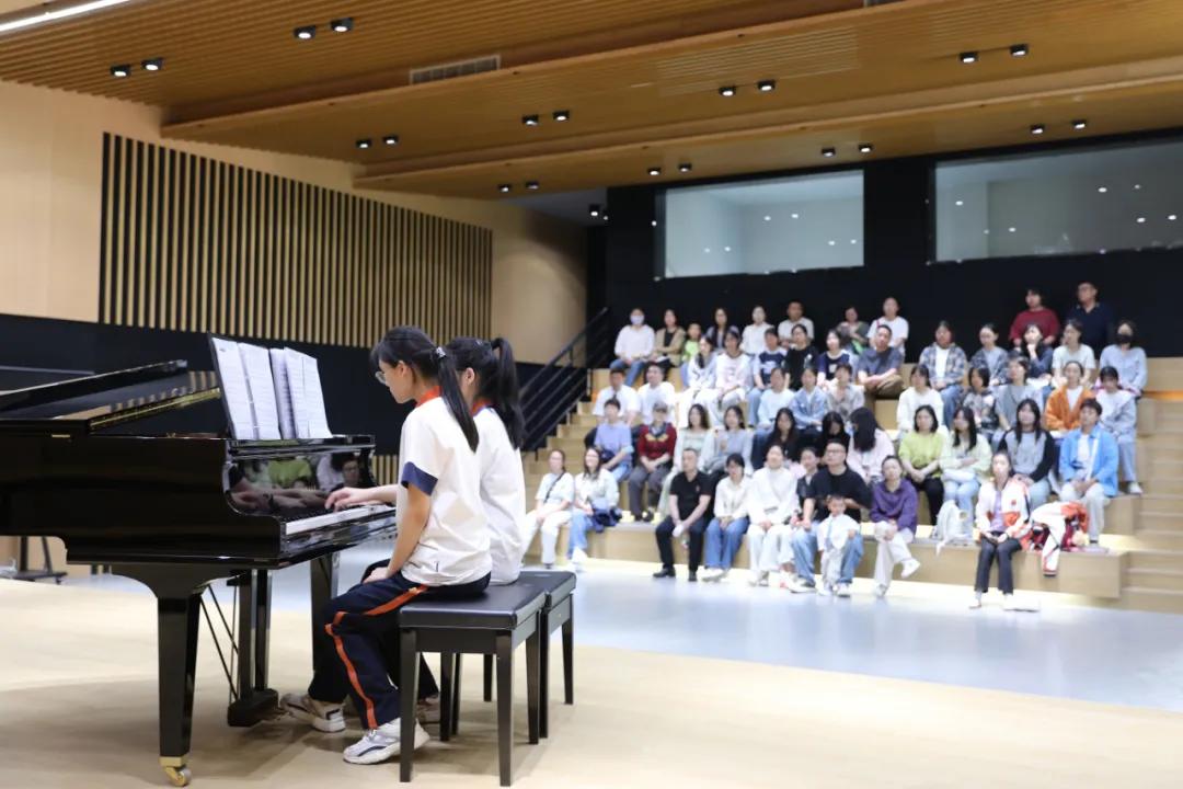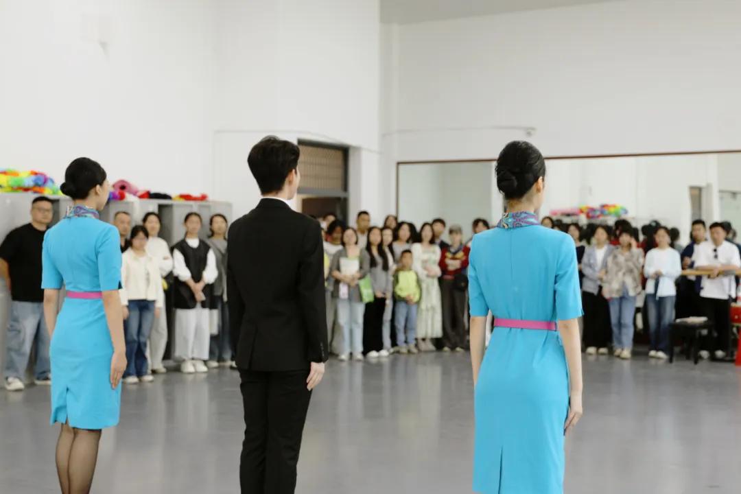 隨后的校園探訪環(huán)節(jié),家長與學生在小導游的引導下,先后參觀美育作品展廳、木棉工作室、一爾皮具工坊、匠心坊及箱創(chuàng)空間,并沉浸式體驗了學前教育專業(yè)的四手聯(lián)彈、歌舞展示及航空服務禮儀操。