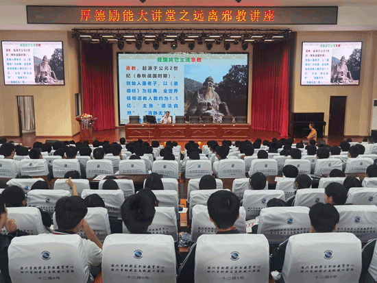 在四月的春風(fēng)中,紹興市柯橋區(qū)職業(yè)教育中心攜手柯橋區(qū)政法委反邪教科,于4月28日下午在學(xué)校報(bào)告廳舉辦了一場(chǎng)別開生面的反邪教知識(shí)講座,為青春筑起堅(jiān)固的思想防線。政法委副書記陳功朝、街道人武部長陳明等領(lǐng)導(dǎo)與學(xué)校領(lǐng)導(dǎo)班子親臨現(xiàn)場(chǎng),為活動(dòng)保駕護(hù)航,確保講座順利開展。