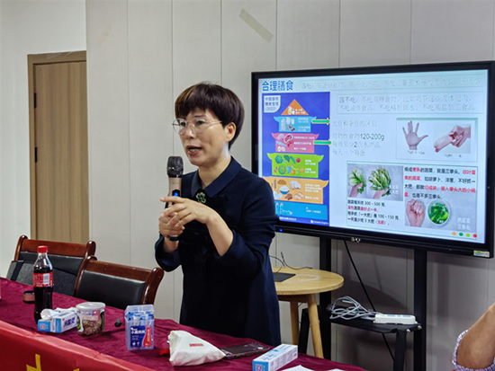 安吉縣人民醫(yī)院戴美琴醫(yī)師擔任本次講座主講人。她結(jié)合多年臨床經(jīng)驗,以通俗易懂的語言分析了老年人常見慢性病現(xiàn)狀,提醒老年朋友“早發(fā)現(xiàn)、早干預(yù)”。針對老年人日常飲食,戴醫(yī)師提出“少鹽少油、均衡搭配”的膳食建議,并現(xiàn)場傳授“控鹽勺”等實用技巧。此外,她還帶領(lǐng)學(xué)員學(xué)習簡單易行的八節(jié)“拍手操”,鼓勵大家將運動融入生活。