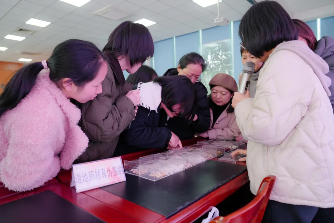 而第二個環(huán)節(jié)的藥材真?zhèn)舞b別競賽更是瞬間點燃現(xiàn)場氣氛,女教師們憑借剛從講座中學到的知識及自身的生活經(jīng)驗,目光專注地審視著各類藥材樣本,積極搶答,在你來我往的熱烈互動中,真正學到了實用的養(yǎng)生知識。