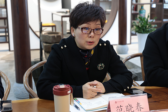 隨后,調(diào)研組在古建園大師工作室與校領(lǐng)導(dǎo)展開了深入交流。范曉春從學(xué)校的歷史沿革、基本概況、治理體系等多個(gè)維度,全面細(xì)致地介紹了學(xué)校的辦學(xué)特色與顯著成果。同時(shí)就提升管理效率、激發(fā)團(tuán)隊(duì)潛能以及深化學(xué)校內(nèi)涵式發(fā)展等方面表達(dá)了學(xué)校所做的努力與面臨的挑戰(zhàn)。