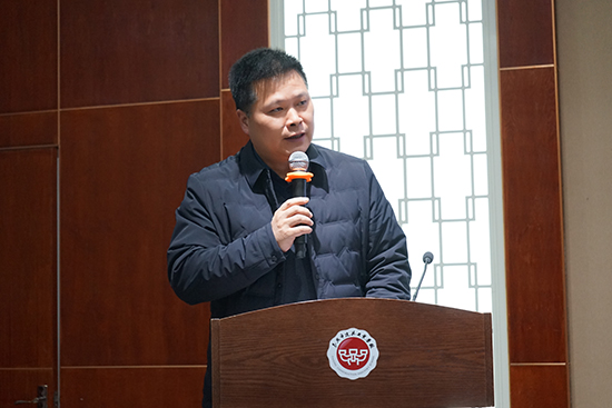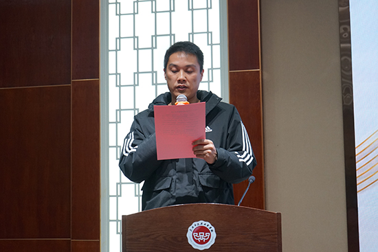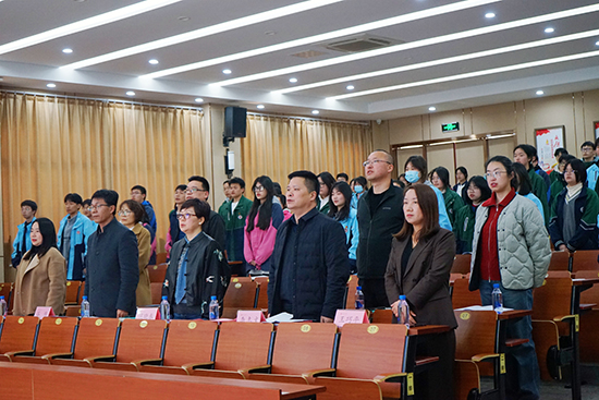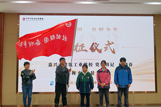 在省賽出征儀式環節中,舞臺布景項目的參賽團隊從范曉春手中接過出征旗幟,他們將代表學校參加即將到來的省級比賽。出征儀式極大地鼓舞了參賽隊員的士氣,也激發了在場學生的競爭意識和團隊協作精神。