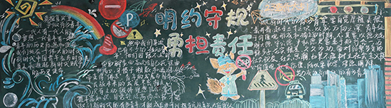 妙筆繪板展風采,規則擔當入心間。各院系按22級、23級、24級三個年級,分別以“法制學習 知法守法”“明約守規 勇擔責任”“交通安全 文明出行”為主題,開展黑板報評比展示活動。各班級積極響應,學生充分發揮創造力,以斑斕色彩與工整文字,將規則意識、擔當精神融入板報創作。