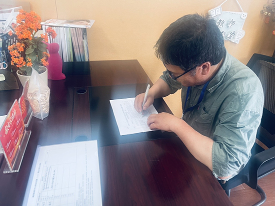 隨后,走進楓橋鎮王冕小學,學校規模大,與校長趙娜一起對照三張重點排查的表格結合相關資料填報,學校平時都按規范操作,嚴格執行,沒有違規的問題。又到楓橋鎮梅苑小學、楓橋鎮旺妙幼教點、楓橋鎮樂山幼教點進行排查。