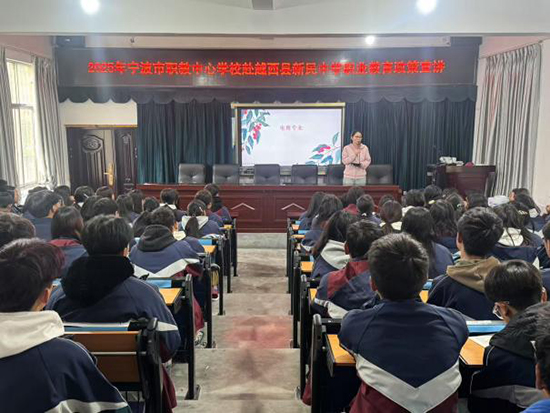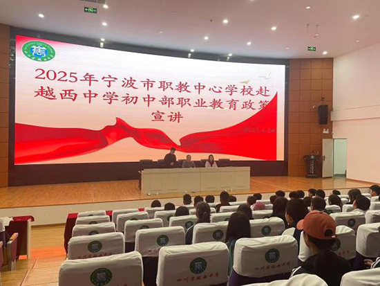 涼山州越西縣西城中學報告廳內身著寧波市職業技術教育中心學校校服的兩名學生給學弟學妹們講在甬求學的經歷。她們是寧波職教中心23級涼山州學生優秀代表王冬旭和馬海阿牛木。看到兩位同學回母校招生,西城中學校長難掩內心激動:“在寧波職教中心讀書兩年,孩子變得這么自信了,眼里有光,非常優秀!”