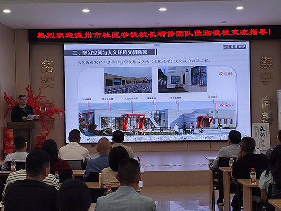 考察團首先抵達元覺街道社區學校。在校園內,眾人實地參觀展廳文化、鄉愁館、實訓場館、室文體場館、辦公室等特色空間,沉浸式感受海島社區教育的獨特氛圍。