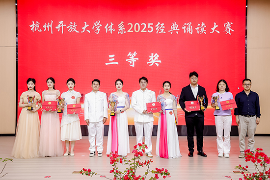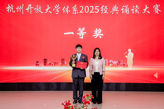 近日,以“典耀中華 賡續(xù)文脈”為主題的杭州開放大學(xué)體系經(jīng)典誦讀大賽在杭州隆重舉行。來自全市開放大學(xué)體系的眾多選手同臺競技,以聲傳情、以誦抒懷,展現(xiàn)中華經(jīng)典文化的永恒魅力。經(jīng)過激烈角逐,浙江開放大學(xué)臨平學(xué)院脫產(chǎn)班24電商吳昊澤同學(xué)憑借出色的表現(xiàn)脫穎而出,榮獲大賽一等獎第一名;22秋學(xué)前開放教育本科張學(xué)楠獲第四名;脫產(chǎn)班25電商趙俊杰獲得第五名的好成績;我院步紅梅老師獲得該賽項唯一一個優(yōu)秀指導(dǎo)老師獎,師生攜手為學(xué)校贏得了榮譽。