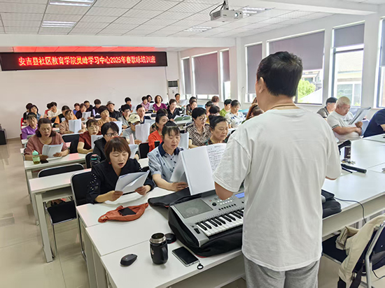 5月14日上午,安吉縣社區(qū)教育學(xué)院靈峰學(xué)習(xí)中心(靈峰成校)的歌詠班內(nèi)氣氛熱烈,在宋雪東老師的帶領(lǐng)下,學(xué)員們迎來了新歌《又見鴻雁東南飛》的教唱課程。