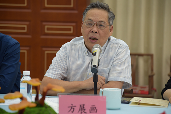 在熱烈的交流氛圍中,余杭區(qū)農(nóng)業(yè)農(nóng)村局副局長何峰與原浙江省教科院院長、浙江大學博士生導師方展畫作總結講話。